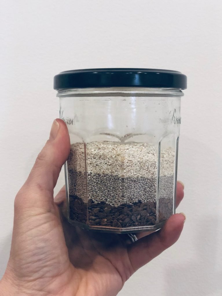 - Seeds: chia seeds, flax seeds and psyllium husk